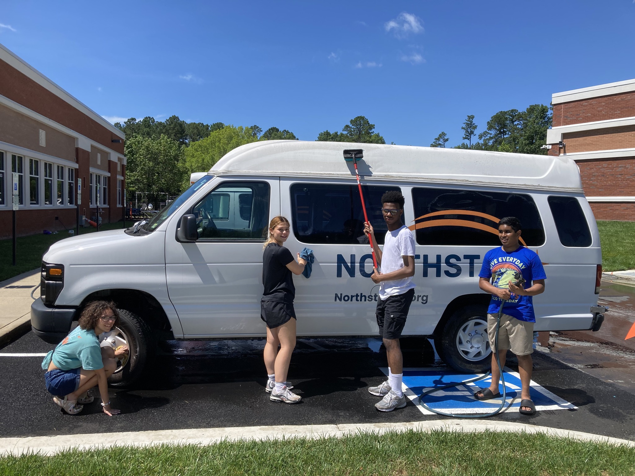 A volunteer group of six teens and two adult chaperones gather in the sweltering parking lot of Northstar’s campus on this mid-June morning. They don rags, cleaning supplies and water buckets as they detail buses and vans used to take students with disabilities into the community.