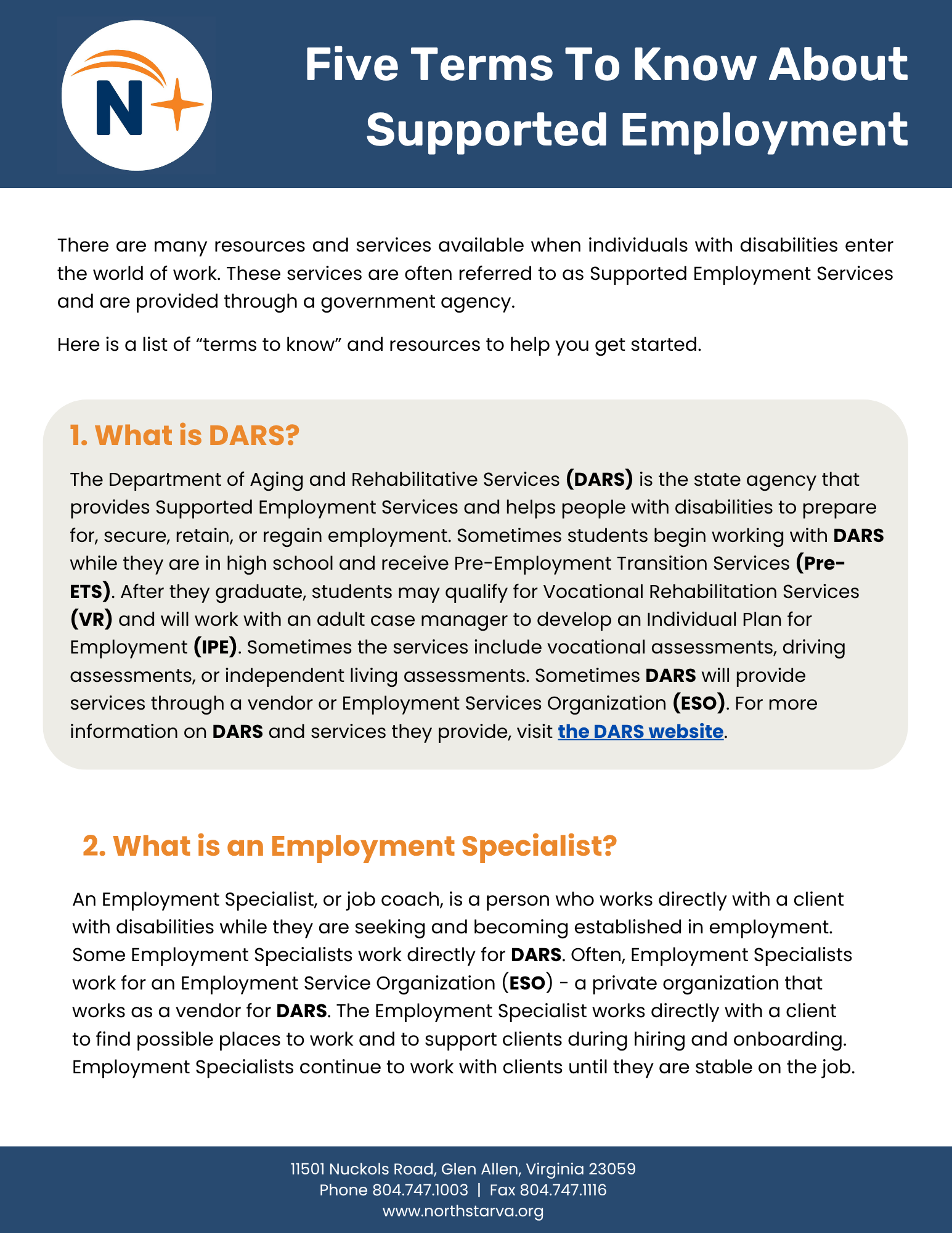 Learn more about Supported Employment and DARS through the fact sheet below.