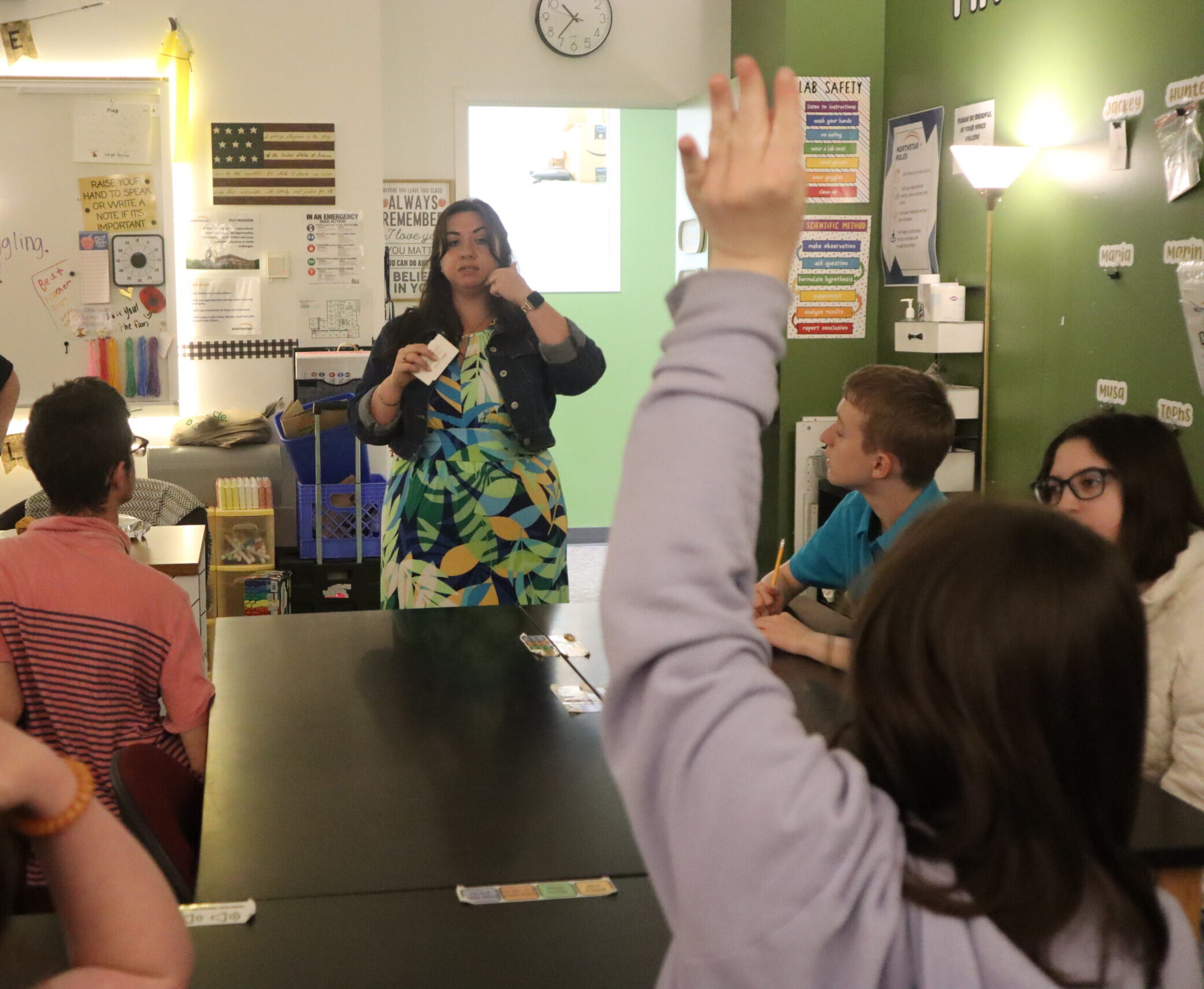 “A lot of computer tech is abstract,” says Business Technology teacher Cynthia Izac on the lesson, “so I try to make it into something we can see and feel.”