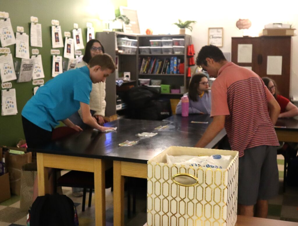 The teachers use their own experiences as examples of self-advocacy, too. Shinault asks the students to help her clean off the desks and put items in their proper place. “What am I doing when I ask you for help?” she asks the students.